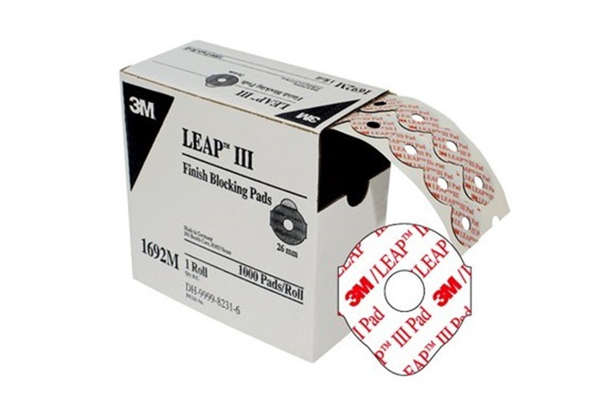 3M Leap III 1692M è un cuscinetto adesivo in schiuma a doppia faccia speciale per il fissaggio durante la molatura delle lenti standard per occhiali. Diametro del disco a forma di cerchio: 26 mm, 1 rotolo = 1000 dischi. Parametri tecnici materiale: schiuma di poliolefine nera, spessore 0,56 mm adesivo: gomma sintetica liner: carta bianca stampata