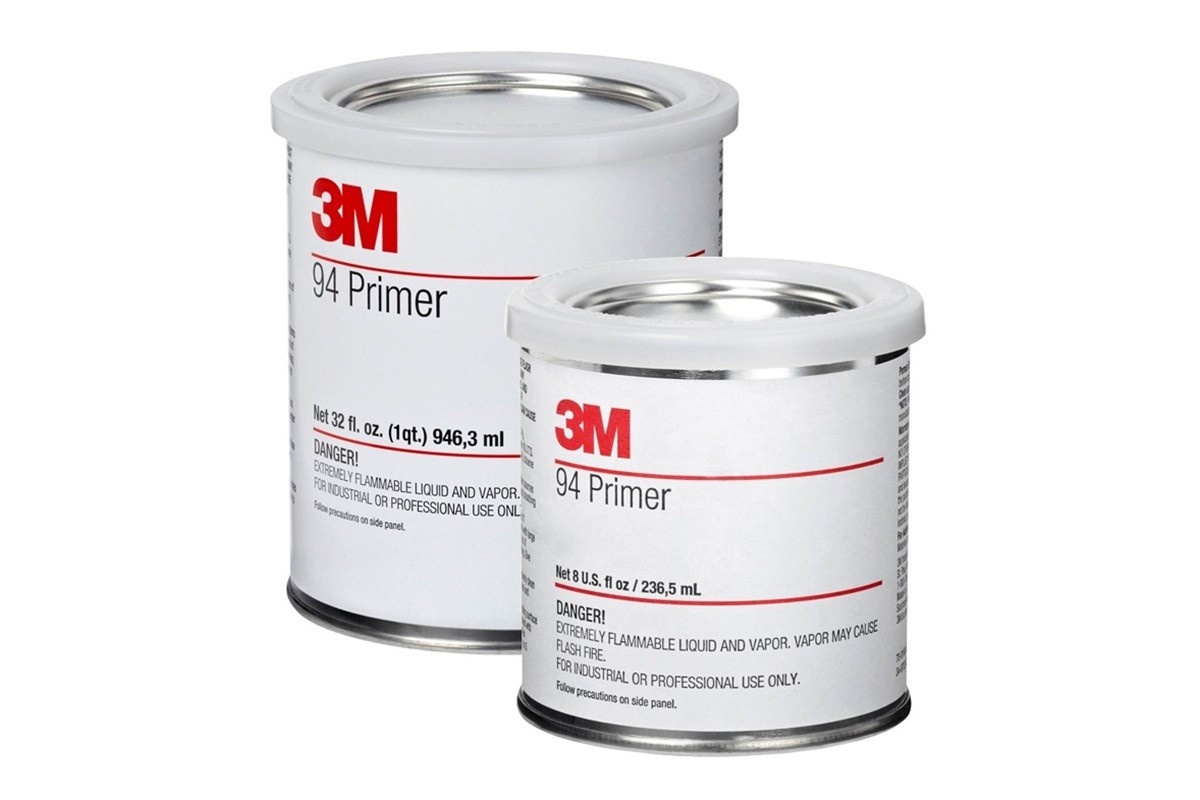 Il primer speciale 3M 94 Primer viene utilizzato prima dell'applicazione di nastri biadesivi su materiali difficili da incollare (LSE), dove aumenta l'adesione dei nastri.