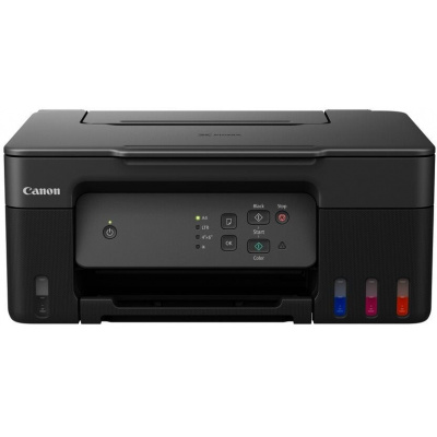 Stampante a getto d'inchiostro MegaTank serie PIXMA G2430 con serbatoi ricaricabili, 4 flaconi di inchiostro standard (1x nero e 1x C/M/Y), Cavo di alimentazione, Manuali e altri documenti, CD-ROM di installazione (CD solo per sistema Windows)