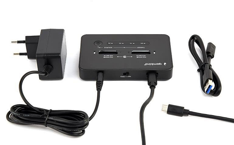OTTENETE DI PIÙ DAL VOSTRO COMPUTER Supporta due unità M.2 NVMe e SATA SSD Adatti per MacBook e PC Caratteristiche Docking station per desktop con disco M.2 SSD: due dischi Supporta qualsiasi disco con connettore M.2 con specifiche NVMe (e SATA), protocollo UASP e comando TRIM Funzione di clonazione offline: NVMe su NVMe fino a 900 MBps o SATA su SATA fino a 300 MBps (con adattatore di alimentazione) Specifiche Ingressi: Porta USB di tipo C; Porta di alimentazione 5V DC 3,5 mm x 1,35 mm per funzione di clonazione Chipset: RTL9220DP USB 3.2 Gen2x2 Materiale: alluminio, plastica Slot per dischi: M.2 (2230, 2242, 2260, 2280, 22110) tasti M, B, B+M fino a 4 GB ciascuno Velocità nel protocollo M.2 interfacce NVMe PCIe: fino a 20 Gb/s Velocità nell'interfaccia M.2 SATA: fino a 5 Gb/s Dimensioni: 102 x 66 x 13 mm Peso netto: 160 g