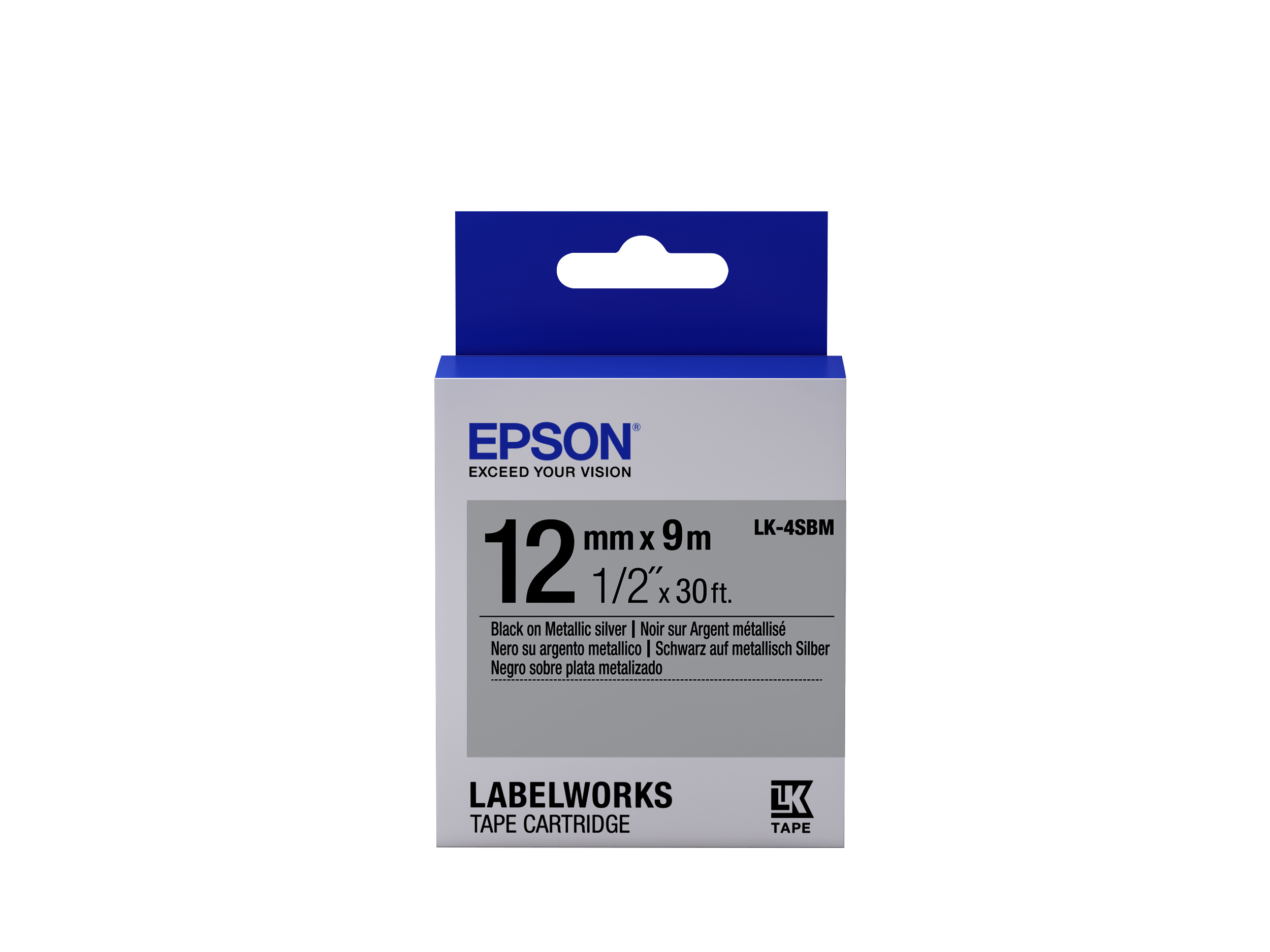 Epson LabelWorks LK-4SBM C53S654019 12mm x 9m, testo nera / nastro argento, fluorescente, nastro originale