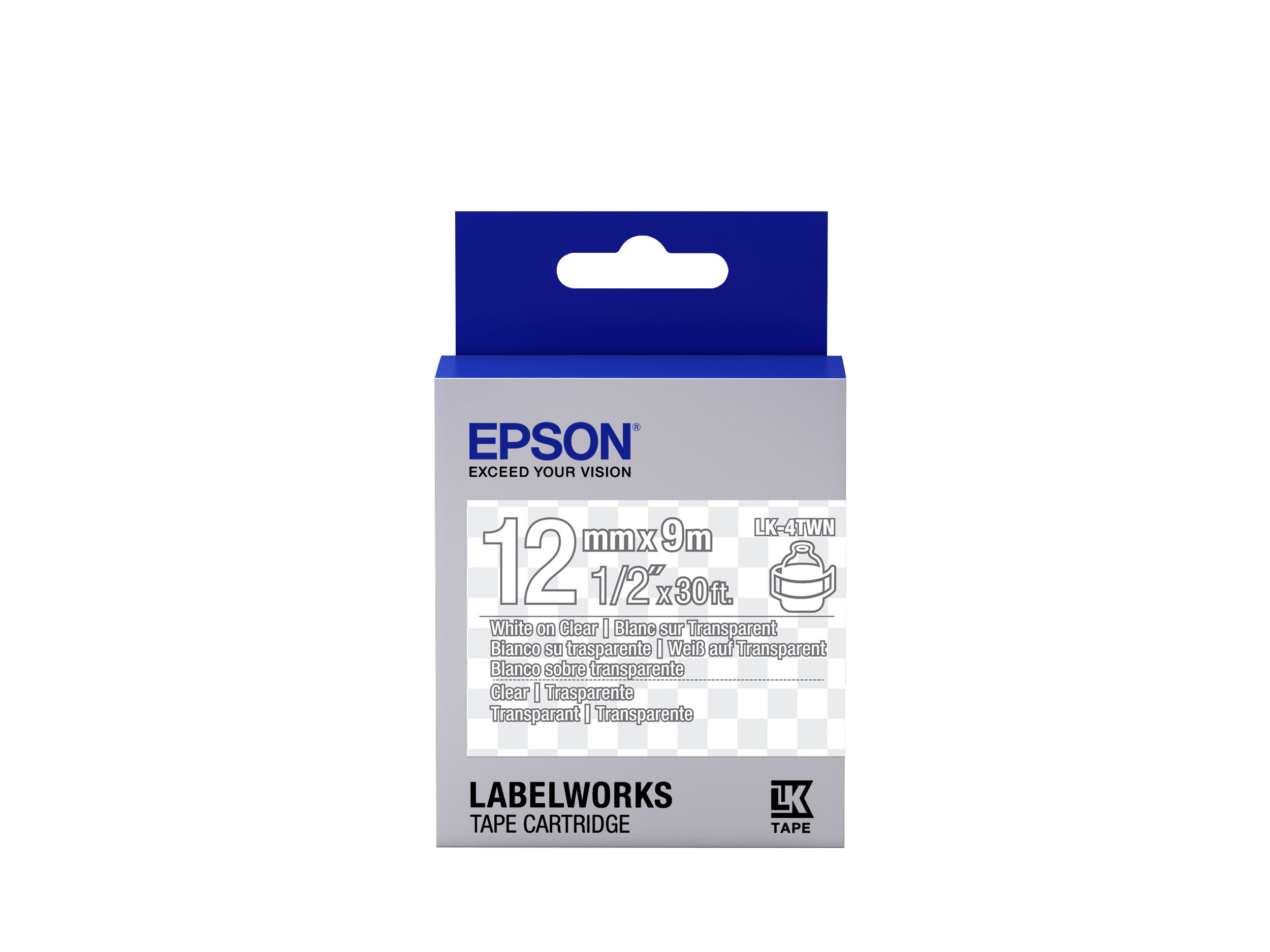 Epson LabelWorks LK-4TWN C53S654013 12mm x 9m, testo bianco / nastro trasparente, nastro originale