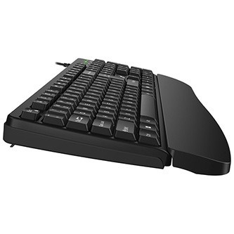 Součástí balení je odnímatelná opěrka zápěstí, která poskytuje oporu předloktím a prstům pro pohodlnější psaní. Konkávní tvar kláves zajišťuje přirozené umístění prstů a přesnější psaní.