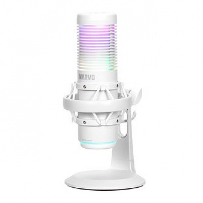 Descrizione del prodotto Marvo, herní/streamovací mikrofon, BLAST 60 White, bílý, RGB podsvícení, vstup pro sluchátka