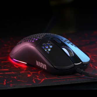 Il mouse da gioco ottico Marvo G925 è ultraleggero, grazie a un design perforato speciale che ricorda i favi d'api (design a nido d'ape). Grazie a ciò pesa solo 70 g ed è quindi più facile da maneggiare durante il gioco. Durante il lavoro e i giochi a lungo termine, quindi non sentirete stanchezza. L'illuminazione RGB del mouse sarà un piacere per gli occhi.