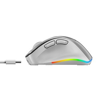 Mouse wireless ergonomico in un design compatto dotato di sensore ottico con risoluzione regolabile fino a 2400 DPI. Il collegamento al computer avviene in modalità wireless tramite Bluetooth o un ricevitore USB miniaturizzato e un'interfaccia a 2,4 GHz. Il mouse può connettersi fino a 3 dispositivi contemporaneamente, tra i quali è possibile passare premendo un solo pulsante (modalità Dual BT + 2,4 GHz). Il ricevitore USB può essere riposto nel corpo del mouse per un facile trasporto. L'alimentazione è fornita da una batteria ricaricabile integrata con una capacità di 500 mAh, che può essere ricaricata tramite la porta USB-C. Piacerà anche la retroilluminazione a sette colori elegante.