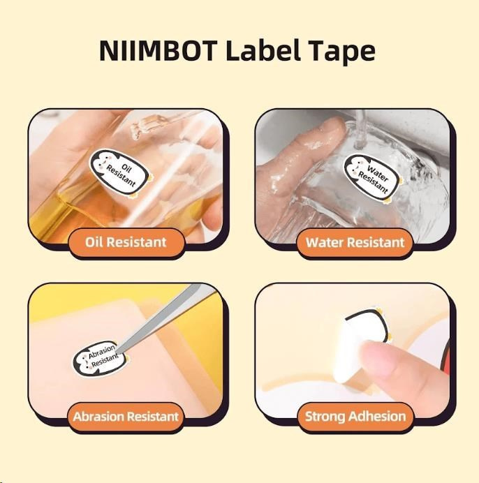 Resistenza e durata - La superficie delle etichette adesive colorate Niimbot è resistente all'umidità, ai raggi UV e all'abrasione, garantendo una leggibilità a lungo termine.