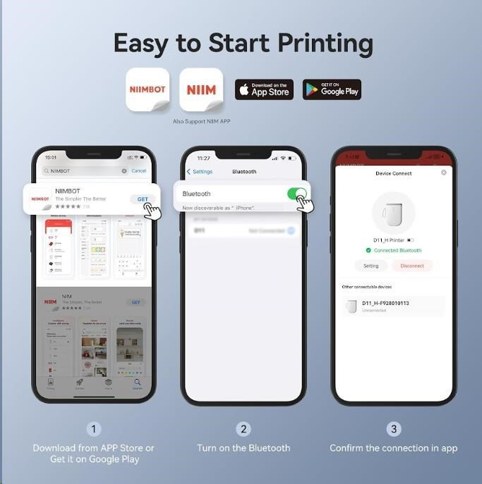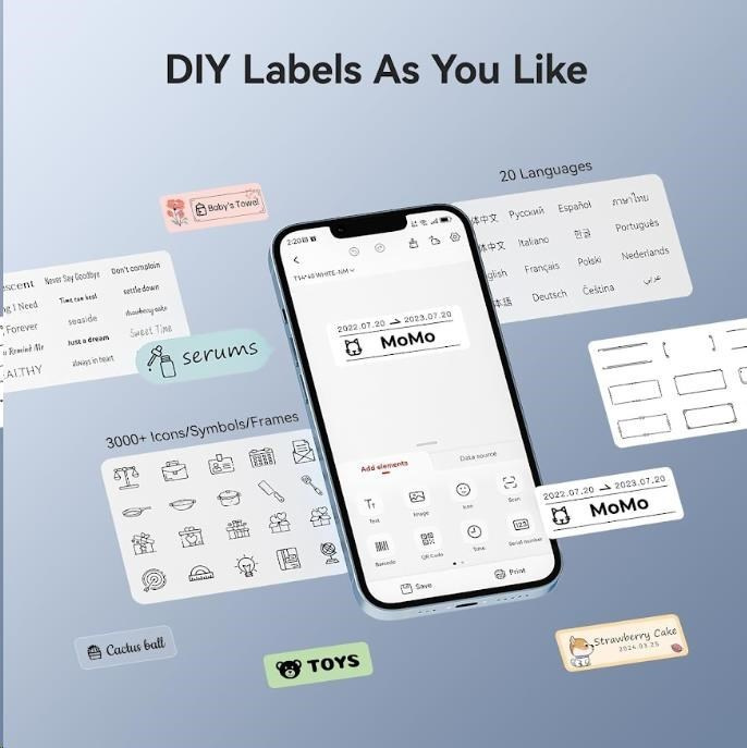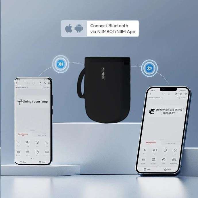 Grazie all'applicazione Niimbot App (per Android e iOS) potete comodamente progettare e stampare etichette direttamente 0. L'etichettatrice consente di collegare fino a sei dispositivi contemporaneamente, rendendola adatta anche per l'uso in team. La funzione di riconoscimento automatico delle etichette garantisce un funzionamento fluido, preciso ed efficiente.