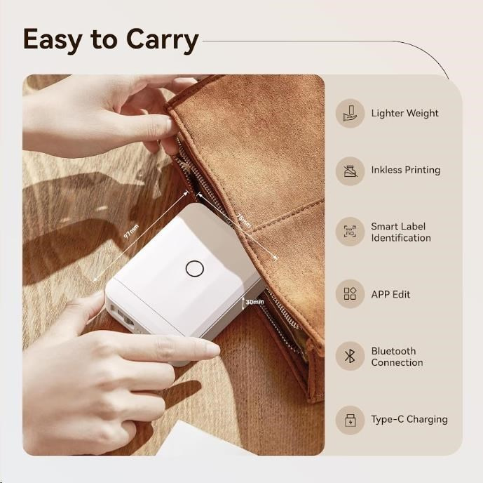 Con un peso di soli 137 grammi, il Niimbot D110-M Smart 1AA56011604 è estremamente portatile e compatto. La testina di stampa giapponese di alta qualità garantisce lunga durata e risultati coerenti.