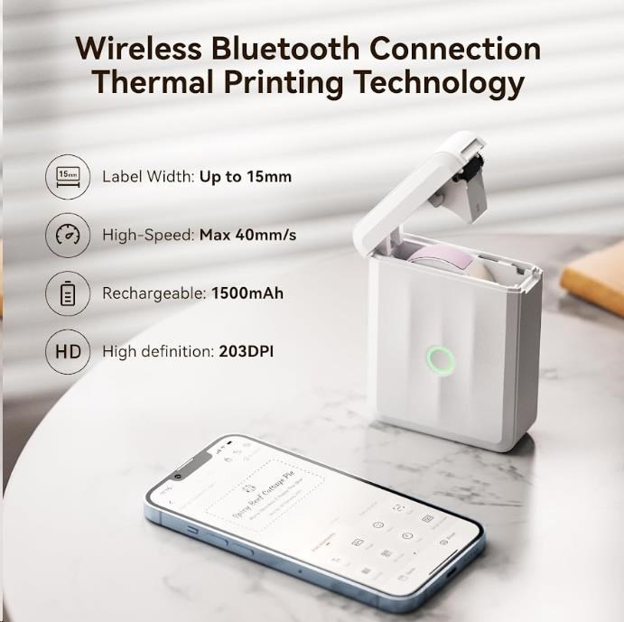 Questo etichettatrice Niimbot D110-M con tecnologia termica diretta è ideale per etichettare oggetti in ufficio, a casa, in negozio o a scuola. Offre una risoluzione di 203 dpi, una larghezza di stampa fino a 12 mm e supporta nastri da 12 a 15 mm, permettendo di creare etichette precise, pulite e professionali.
