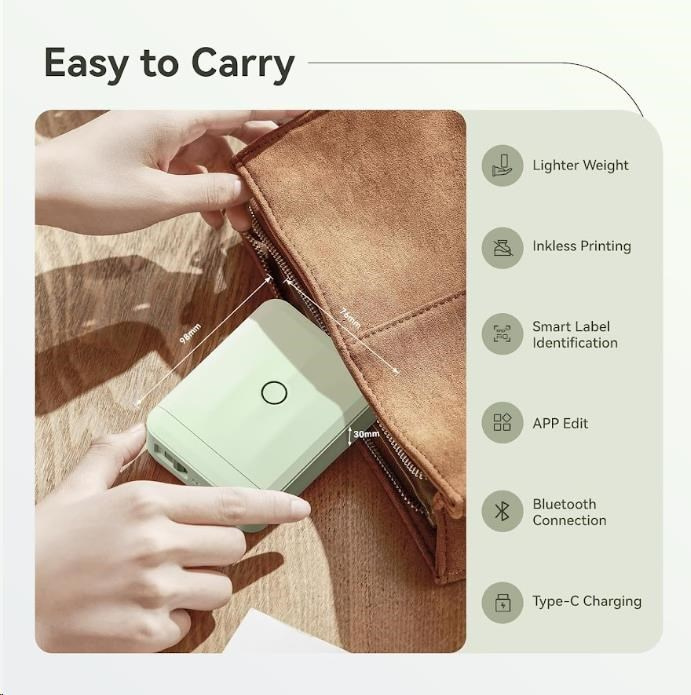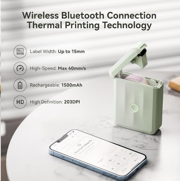 Utilizzando la tecnologia di stampa termica, stampa senza necessità di inchiostro o toner, garantendo bassi costi operativi e funzionamento senza manutenzione. L'etichettatrice offre una risoluzione di 203 dpi, una larghezza di stampa fino a 12 mm e una velocità fino a 40 mm/s, creando così stampe nitide, pulite e durevoli.