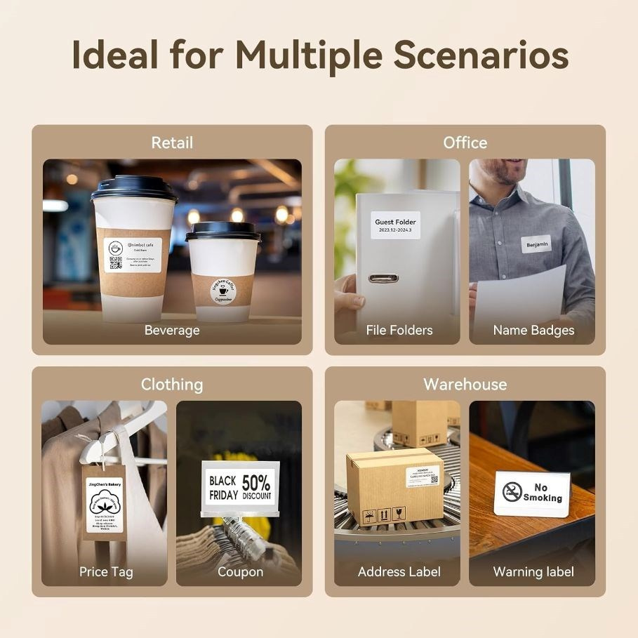 È in grado di stampare fino a 300 etichette al minuto con una qualità di 203dpi e una larghezza da 20 mm fino a 80 mm. La stampante di etichette Niimbot K3 Smart 1AE17271605 è in grado di stampare anche codici a barre e codici QR, o ad esempio un logo più dettagliato, grazie alla risoluzione di qualità superiore. È quindi adatta per la stampa di etichette su imballaggi di prodotti, etichette di prezzo, etichette di spedizione, ecc.Caratteristiche della stampante per etichette Niimbot K3 Smart 1AE17271605: