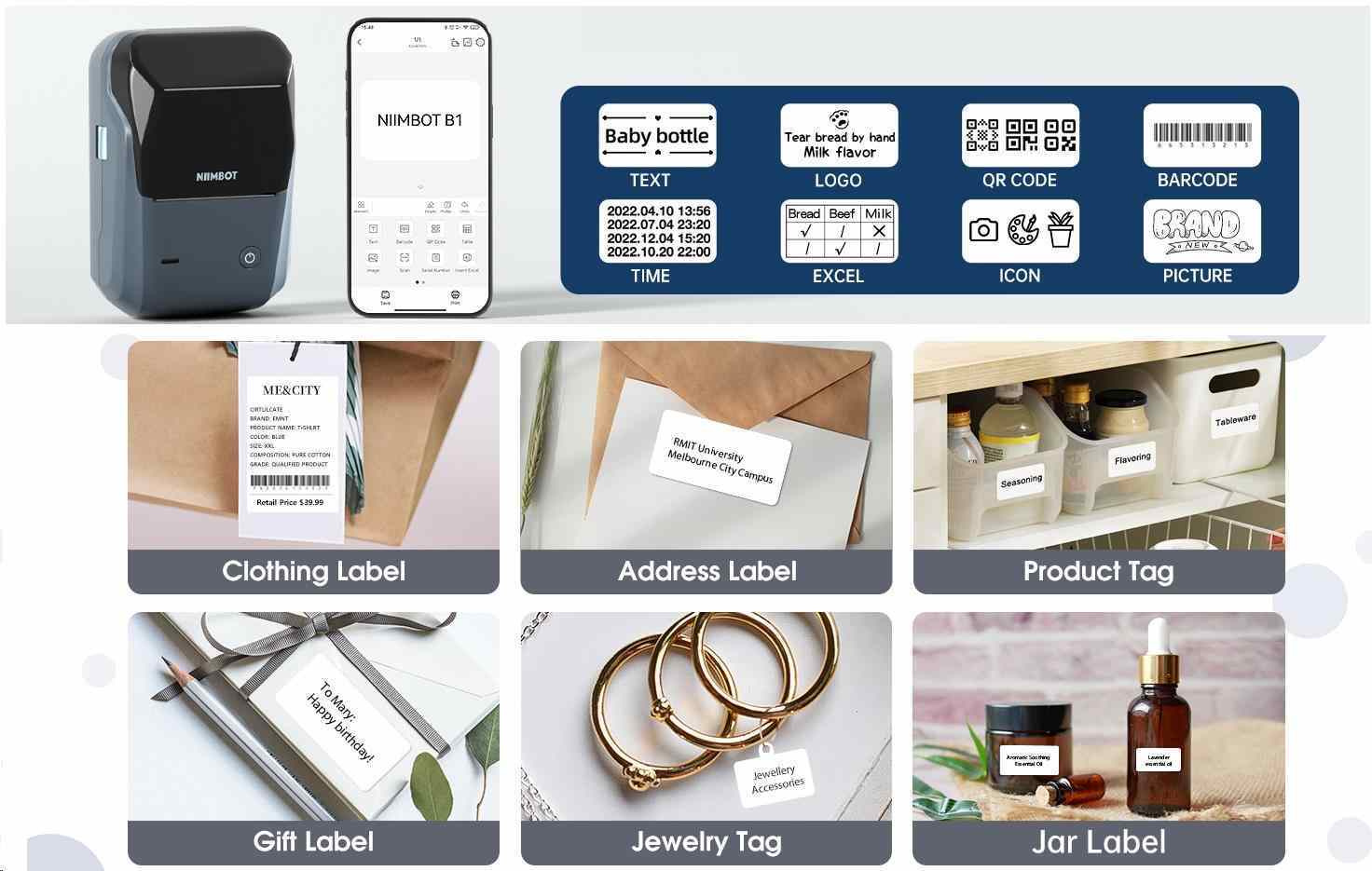 Grazie alla connessione Bluetooth e alla compatibilità con l'applicazione Niimbot App per Android e iOS, è possibile stampare etichette comodamente direttamente dal telefono cellulare o dal tablet.