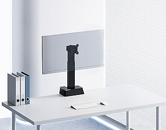 Il supporto per monitor con altezza regolabile automaticamente Powerton ERGO LEVION offre una soluzione di alto livello per l'ergonomia sul posto di lavoro – combina una regolazione elettrica avanzata con un design elegante e moderno.