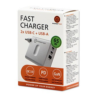 Powerton ENERGY VOLTIX adattatore 65W, 3 porte, GaN, 2x USB-C, 1x USB-A, QC 3.0, PD