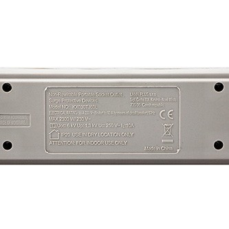 La protezione da sovratensione ha 6 prese, di cui una è separata dalle altre da uno spazio maggiore e serve per collegare adattatori di alimentazione, che spesso con altre protezioni da sovratensione si estendono fino alla presa adiacente, privandoti di essa.