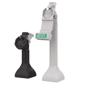 The RAM Mounts GDS Uni-Conn docking station (7“) is a free-standing dock designed for devices enclosed in an IntelliSkin Next-Gen, IntelliSkin Hard Case, or IntelliSkin Thin-Case with a mounted GDS Uni-Conn adapter. This solution can swivel 180 degrees and allows the device to tilt 180 degrees, making it ideal for customer-centric industries like retail, hospitality, food service, and more. The snap-in holder keeps your device securely in place while enabling fast charging via the integrated pogo pins, with power supplied through a Power over Ethernet (PoE) connection over a RJ45 port. The docking station is mounted using a screw-down attachment, which provides a stable base for the tall pedestal. It also supports an easy docking and undocking process: Insert the tablet with the IntelliSkin protective sleeve and mounted GDS Uni-Conn adapter into the base of the dock and push it back until it snaps into place. To remove it, simply press the lever to release the tablet. For the docking station to function, the GDS Uni-Conn adapter (RAM-GDS-U1U) must be mounted on the compatible IntelliSkin protective sleeve. Product features RAM-GDS-DOCK-D11-7-U1E-GRY: Only compatible with IntelliSkin & Uni-Conn adapter Snap-In function Key-Locking Easy insertion and removal Charging function Output Voltage: USB PD 3.0 - 5V @ 3A / 9V @ 2.2A / 12V @ 1.67A Power Output: 24W max Transfer Speed: 10/100Mbps Input Connector: JST Male Connector Input Cable Length: ca. 150 cm Includes RAM PoE to PD Charging Module Product Dimensions: Height from base to tilt bolt: 18.38 cm Base Width: 9.65 cm Base Depth: 9.65 cm Weight: approx. 1.02 kg Additional information: The Lever Stop included with this dock is required in order to function properly. Warranty on dock is void if dock is used without Lever Stop. Devices shown are not included in the delivery. Only the RAM-GDS-DOCK-D11-7-U1E-GRY is supplied.