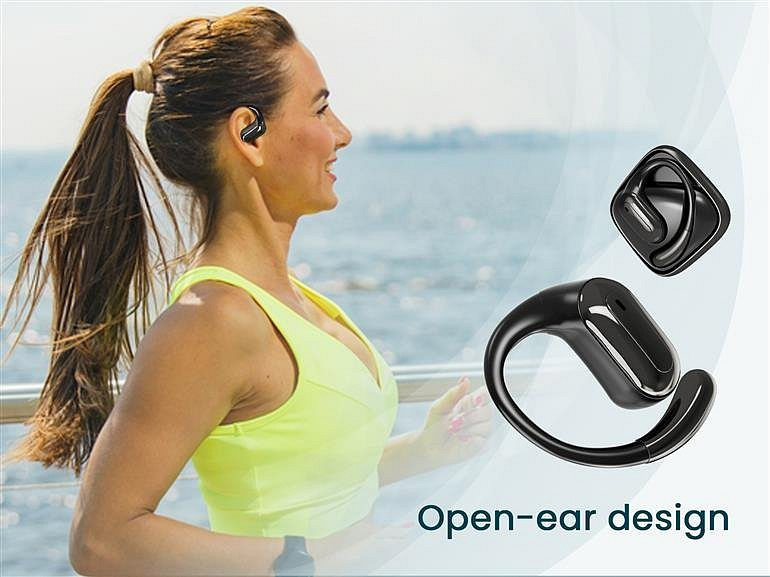GODETEVI LA MOBILITÀ SENZA FILI La struttura con ganci aperti vi mantiene informati, permettendovi di essere consapevoli dell'ambiente circostante. Ascoltate musica e telefonate senza usare le mani. Funziona con notebook, tablet o smartphone compatibili con BT Caratteristiche Cuffie aperte BT TWS Design aperto con gancio per un comfort ottimale Fino a 3 ore di ascolto con una singola carica La batteria nella custodia di ricarica aggiunge fino a 9 ore di ascolto Attenuazione automatica della musica in caso di chiamate in arrivo Indicatore LED di stato Specifiche Interfaccia: BT v.5 Gamma di frequenza BT: 2402 ~ 2480 MHz Potenza di uscita RF: 4 dBm Profili supportati: HSP, HFP, A2DP e AVRCP Tempo di ricarica: fino a 1 ora Potenza di ingresso: 5,0 V, 300 mA (1,5 W) Raggio operativo: fino a 10 m in spazio aperto Risposta in frequenza dell'altoparlante: 20 Hz - 20.000 Hz Batteria: custodia 300 mAh; auricolari interni 30 mAh x 2 pezzi, Li-Polymer Peso netto (intero set): 45 g