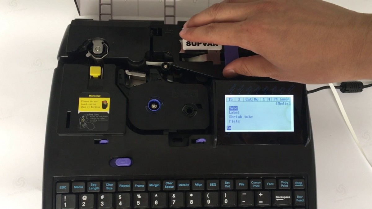 Il marcatore stampa su guaine con un diametro fino a 6.0 mm e etichette autoadesive di larghezza 6, 9 e 12 mm. Quando si utilizza il software originale - possibilità di stampare la diacritica ceca. Il software consente inoltre il trasferimento di file da Excel o tramite scheda di memoria, la possibilità di stampare un logo o un simbolo.