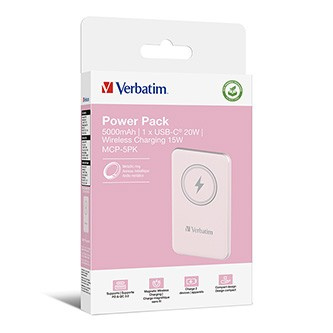 Verbatim 32243 power bank con ricarica wireless, 5V, 5 000mAh, rosa