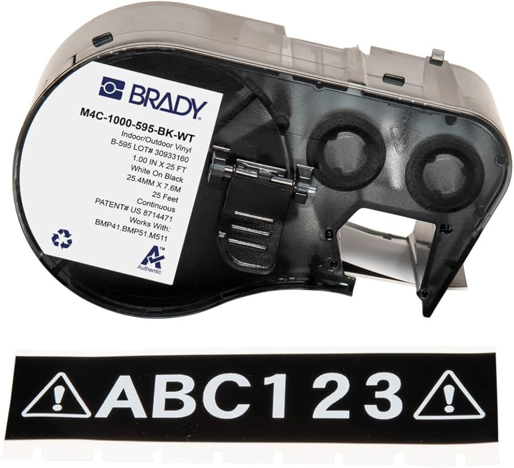 Brady M4C-500-595-BK-WT / 170821, 12.70 mm x 7.62 m, Vinile, testo bianco / sfondo nero può essere utilizzato in queste stampanti